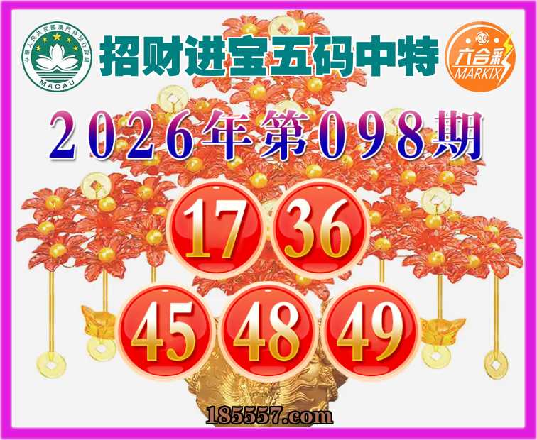 098期:『招财进宝』五码中特⚽【17.36.45.48.49】开:17
