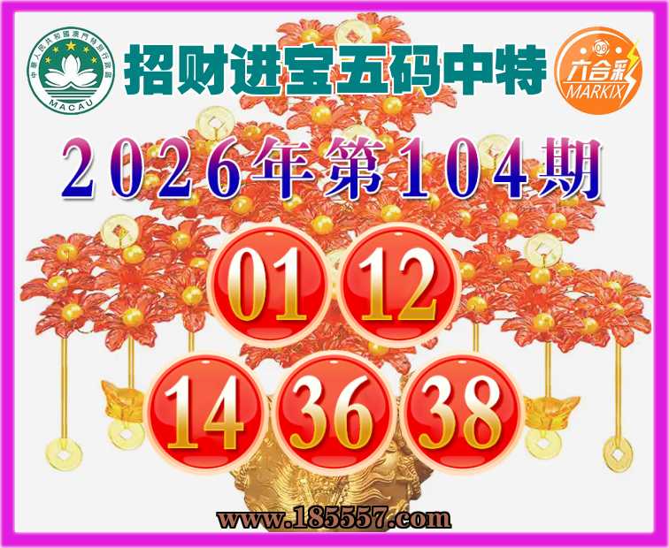 104期:『招财进宝』五码中特⚽【01.12.14.36.38】开:01