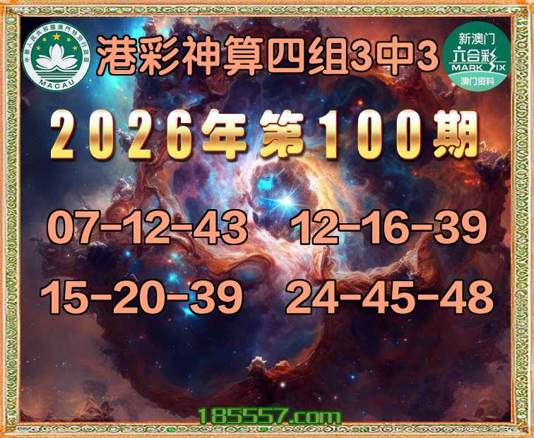 100期: 港彩神算 🎀四组3中3🎀