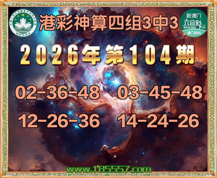 104期: 港彩神算 🎀四组3中3🎀