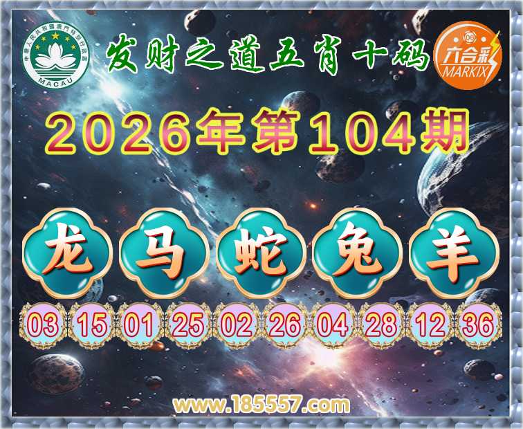 104期: 发财之道 🍗五肖十码🍗【龙蛇兔羊】开:马01