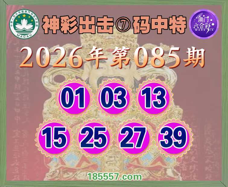 085期:【神彩出击】 👑⑦码中特👑【01.03.13.15.25.27.39】开:19