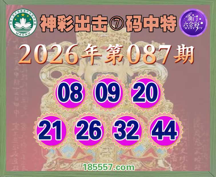 087期:【神彩出击】 👑⑦码中特👑【08.09.20.21.26.32.44】开:26