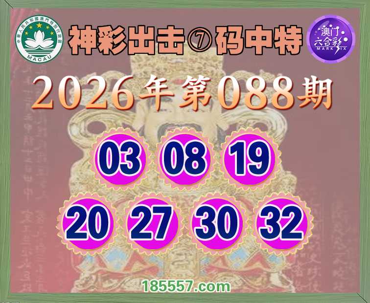 088期:【神彩出击】 👑⑦码中特👑【03.08.19.20.27.30.32】开:27