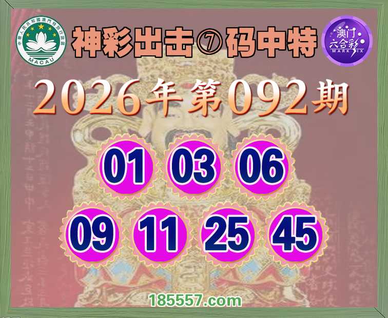 092期:【神彩出击】 👑⑦码中特👑【01.03.06.09.11.25.45】开:06