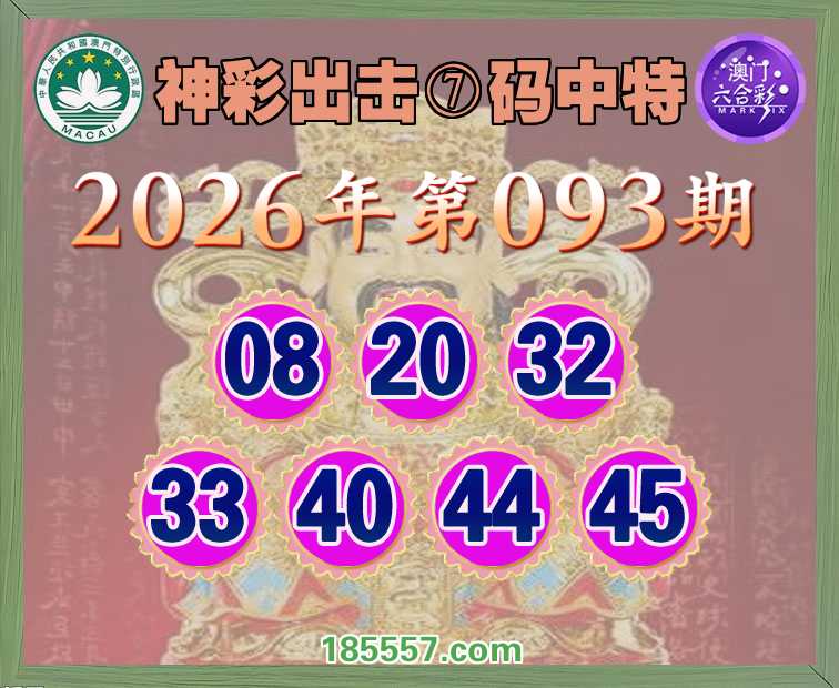 093期:【神彩出击】 👑⑦码中特👑【08.20.32.33.40.44.45】开:40
