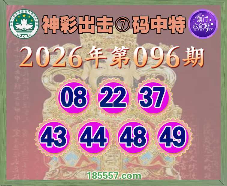 096期:【神彩出击】 👑⑦码中特👑【08.22.37.43.44.48.49】开:43