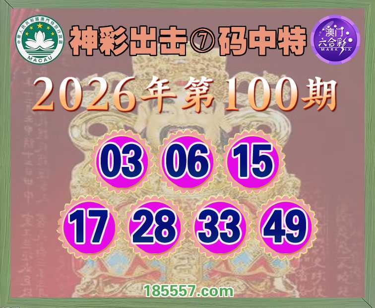 100期:【神彩出击】 👑⑦码中特👑【03.06.15.17.28.33.49】开:33