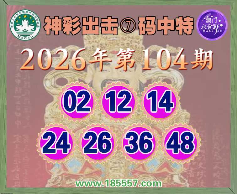 104期:【神彩出击】 👑⑦码中特👑【02.12.14.24.26.36.48】开:01