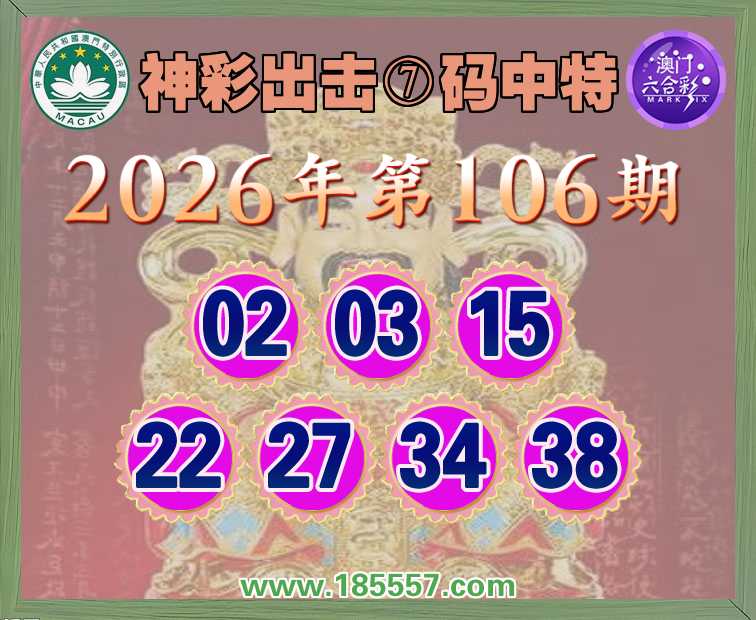 106期:【神彩出击】 👑⑦码中特👑【02.03.15.22.27.34.38】开:22