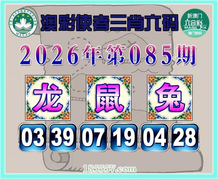 085期:『澳彩使者』 👉三肖六码👉【龙兔】开:鼠19