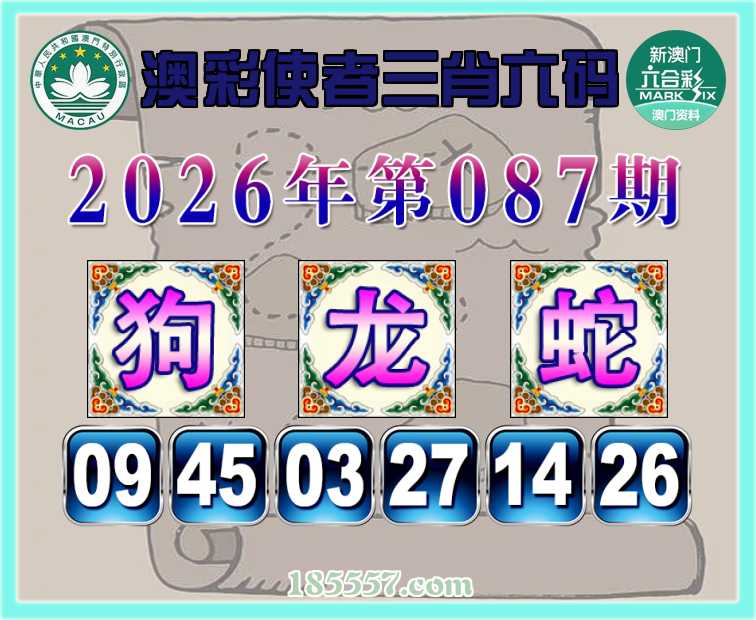 087期:『澳彩使者』 👉三肖六码👉【狗龙】开:蛇26