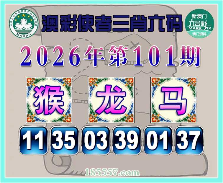 101期:『澳彩使者』 👉三肖六码👉【猴马】开:龙39